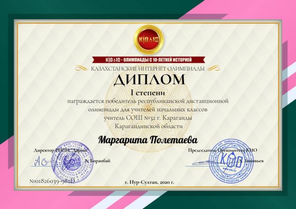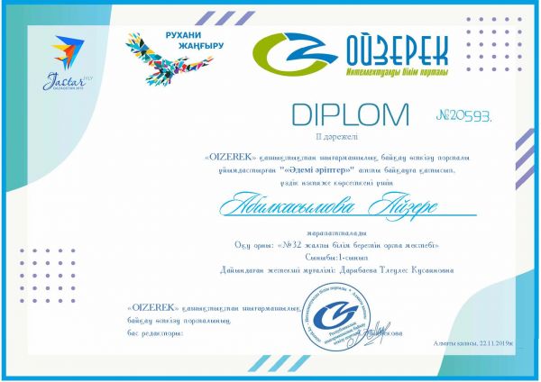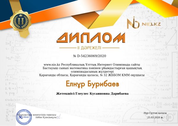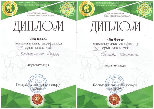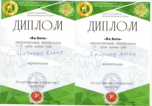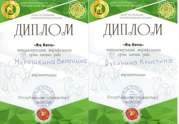 Ученики 3- Г класса заняли I, II, IIIместо в республиканской олимпиаде «Ақ бота»