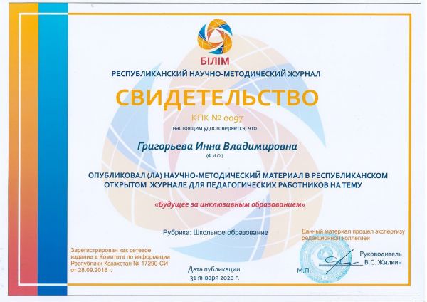 Григорьева Инна Владимировна – учитель начальных классов, специалист высшей категории высшего уровня квалификации продолжает делиться своим педагогическим опытом с коллегами и молодыми специал…