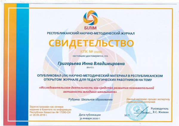 Учащиеся 4 Г класса(классный руководитель Еремеева В.А.) приняли участие в Интеллектуальном марафоне «Акбота» (ноябрь-декабрь 2019г.).