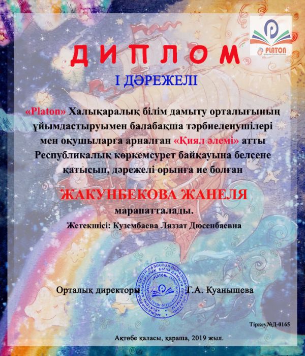 "Platon" Халықаралық білім дамыту орталығының ұйымдастыруымен оқушыларға арналған "Қиял әлемі" атты Республикалық көркемсурет байқауы белсене қатысып, 1-сынып оқушылар…