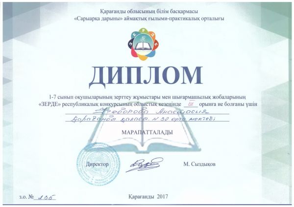 Учащиеся СОШ №32 заняли призовые места в областном этапе республиканского конкурса исследовательских проектов "Зерде".