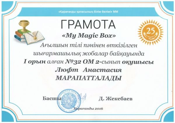 I место в городском конкурсе по английскому языку "My Magic Box"