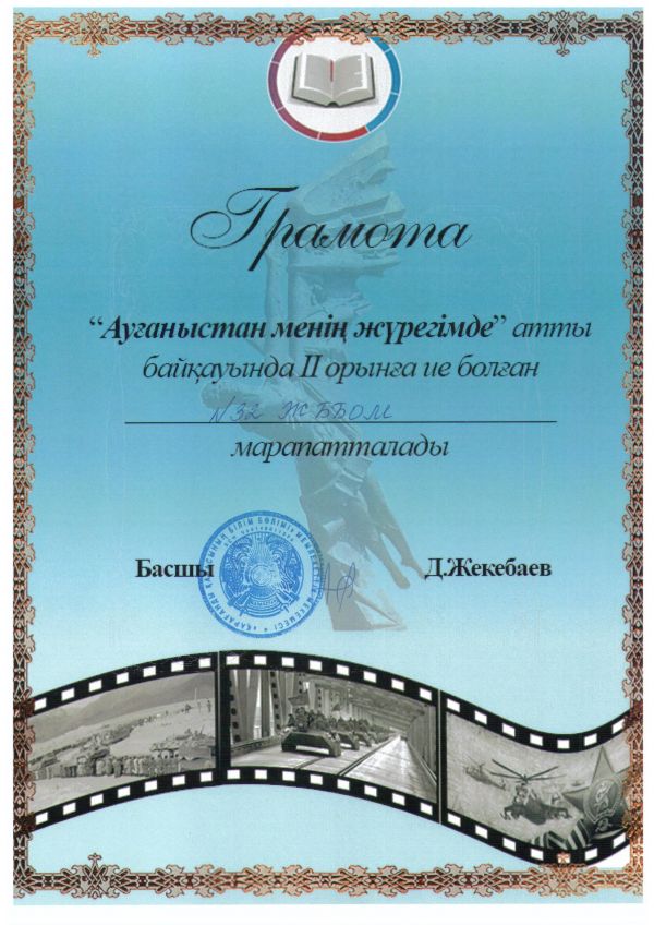 II место в конкурсе «Афганистан живет в моей душе»