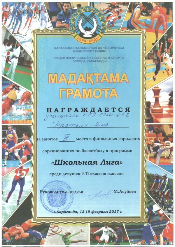 Команда девушек СОШ №32 заняла III место в финальных городских соревнованиях по баскетболу в программе "Школьная Лига".