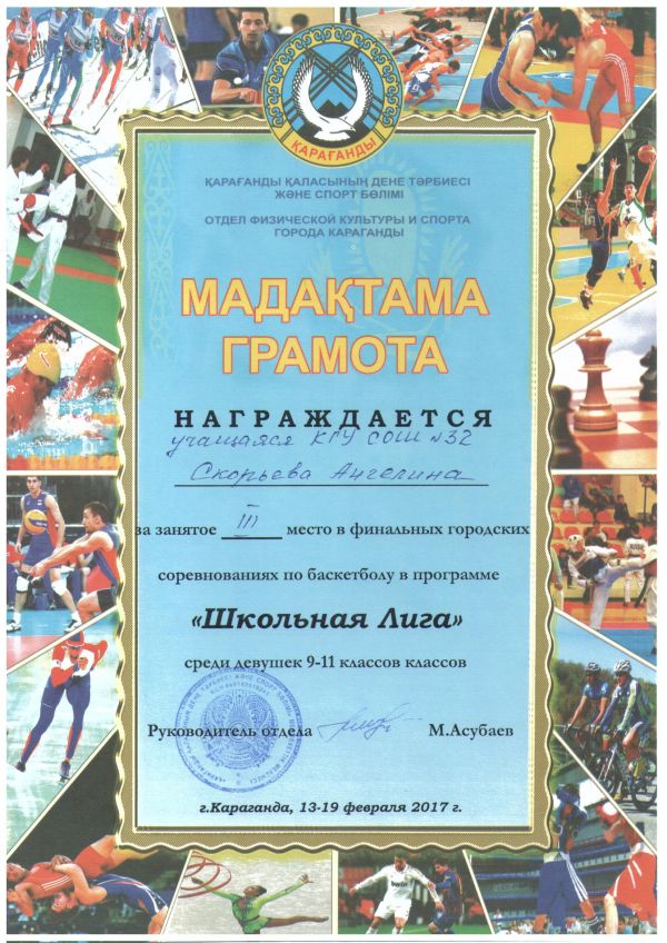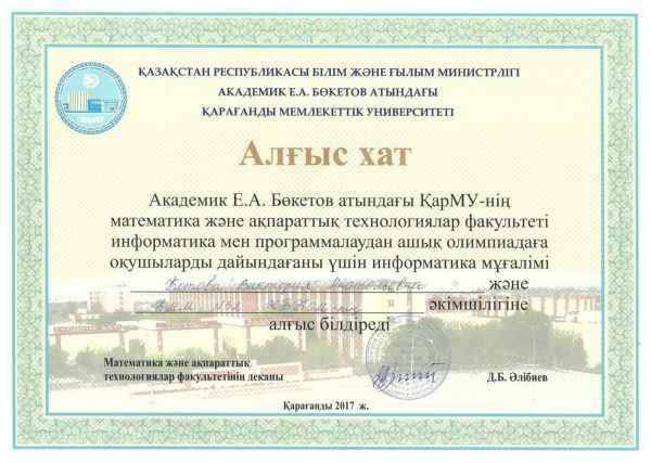 Ученик 11"Б" класса СОШ №32 Дорожкин Данил занял III место в ежегодной Открытой олимпиаде по информатике и программированию, проводимой в КарГУ им. Букетова, и награжден медалью и дипломом…