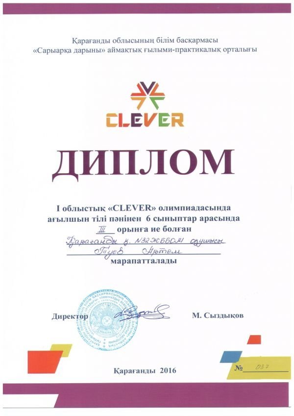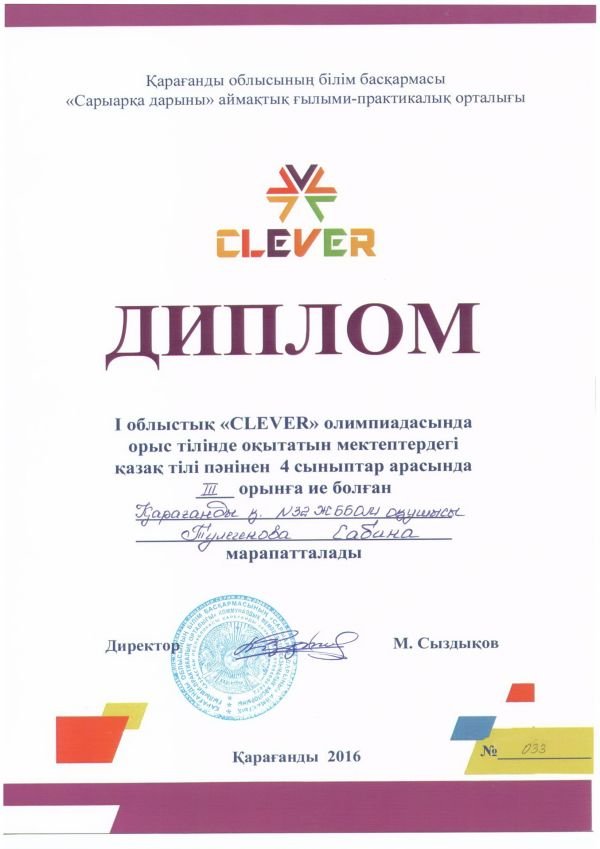 Тулегенова Сабина (4в) - III место по казахскому языку;
