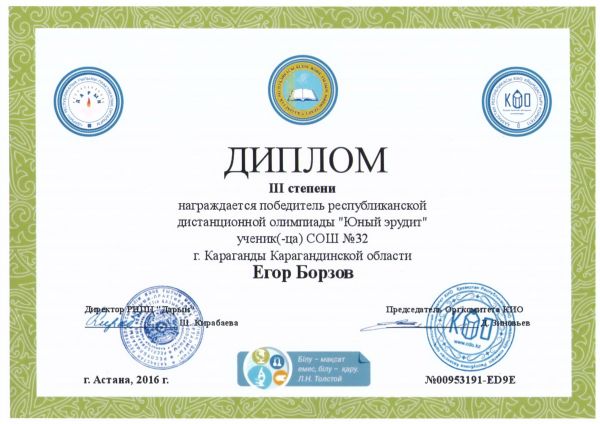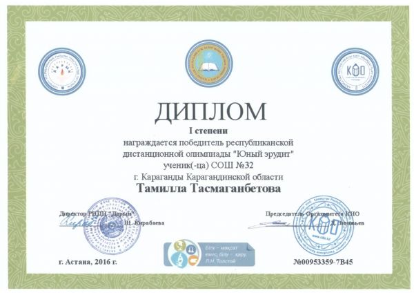 Призеры республиканской дистанционной олимпиады «Юный эрудит»