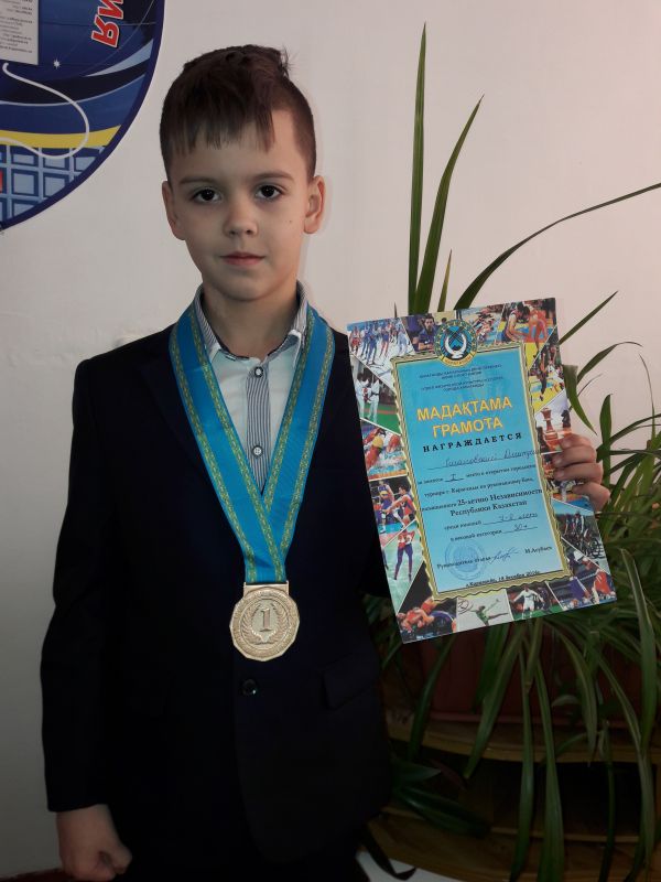Ученик 1Б класса СОШ №32 Смоловский Дмитрий занял I место в открытом городском турнире г.Караганды по рукопашному бою, посвященному 25-летию Независимости Республики Казахстан, среди юношей 7-8 лет…