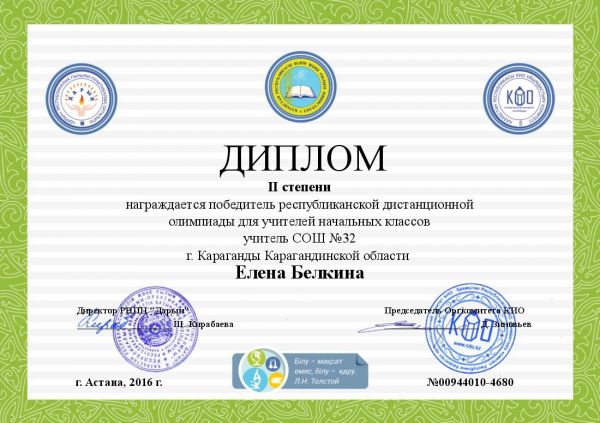 Учителя начальной школы СОШ №32 приняли участие в Республиканской дистанционной олимпиаде для учителей начальных классов. Призеры олимпиады: