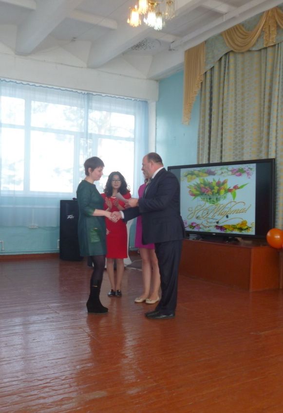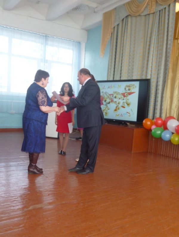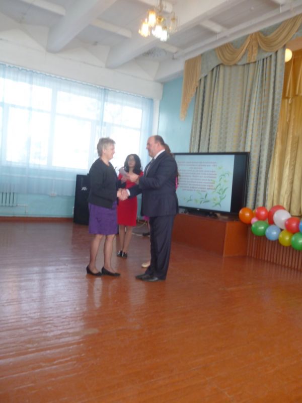 Директор школы Хомин А.И. вручил почетные грамоты, благодарственные письма учителям. А учащиеся школы подарили букет из поздравлений…