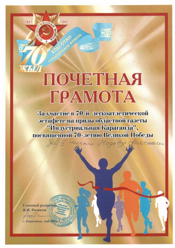 Поздравляем команду юношей СОШ №32, занявших I место, и команду девушек, занявших II место в 70-й легкоатлетической эстафете на призы областной газеты "Индустриальная Караганда", посвященн…