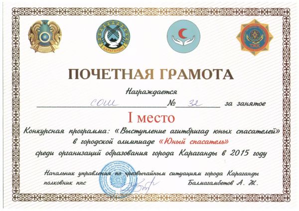 12 мая команда спасателей нашей школы заняла III место в открытой городской олимпиаде «Юный спасатель», проходившей среди организаций образования г. Караганды. I место – в конкур…