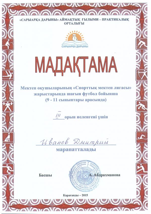 Ученик 3Г класса КГУ СОШ №32 Бейсембаев Адиль принимал участие в Чемпионате Республики Казахстан в составе команды "Юность 2004". Команда заняла II место, став серебряным призером Чемпиона…
