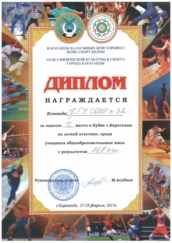 Команда СОШ №32 заняла III место в Кубке г. Караганды по легкой атлетике, среди учащихся общеобразовательных школ.