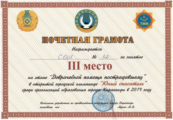 Администрация СОШ №32 выразила благодарность учащимся, занявшим III место в 69-й легкоатлетической эстафете на призы областной газеты "Индустриальная Караганда", за добросовестное…