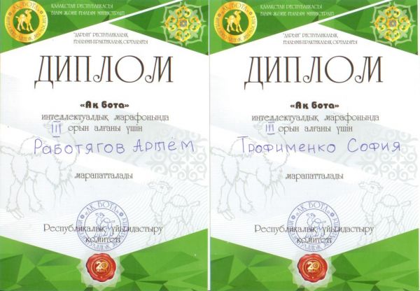 3- Г сынып оқушылары «Ақ бота» Республикалық олимпиадаға қатысып, жүлделі I, II, III орындарға ие болды