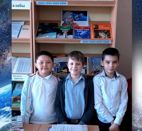 «Адам. Ғалам. Ғарыш. Человек. Вселенная. Космос» тақырыптық кітап көрмесі мектеп кітапханасында авиация және ғарышкерлер күніне арналды.