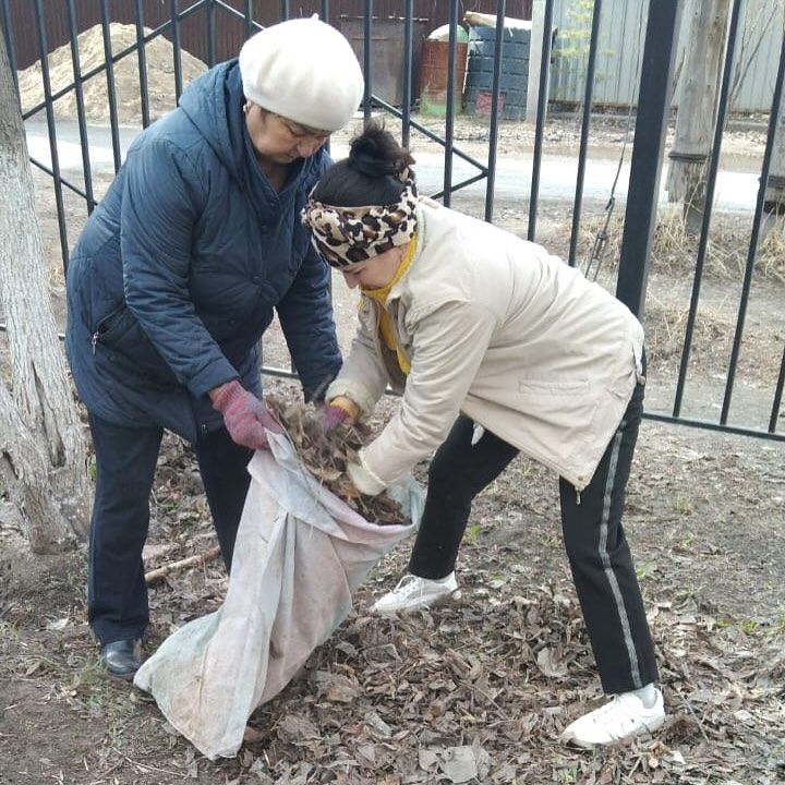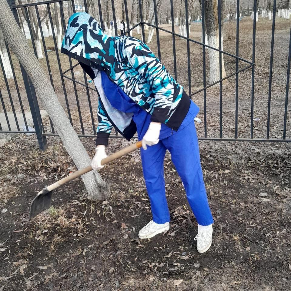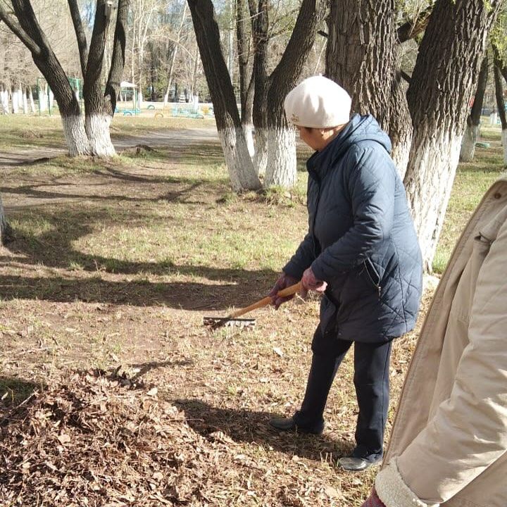 Мектеп ұжымы мектеп аумағын санитарлық тазалауға белсене қатысты.
