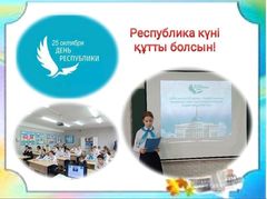Республика күніне байланысты “Республика күні-ұлттық мереке”тақырыбында мерекелік концерт өткізілді. Жауапты мұғалімдер Сагындыкова С.С., Конкашова Г.О