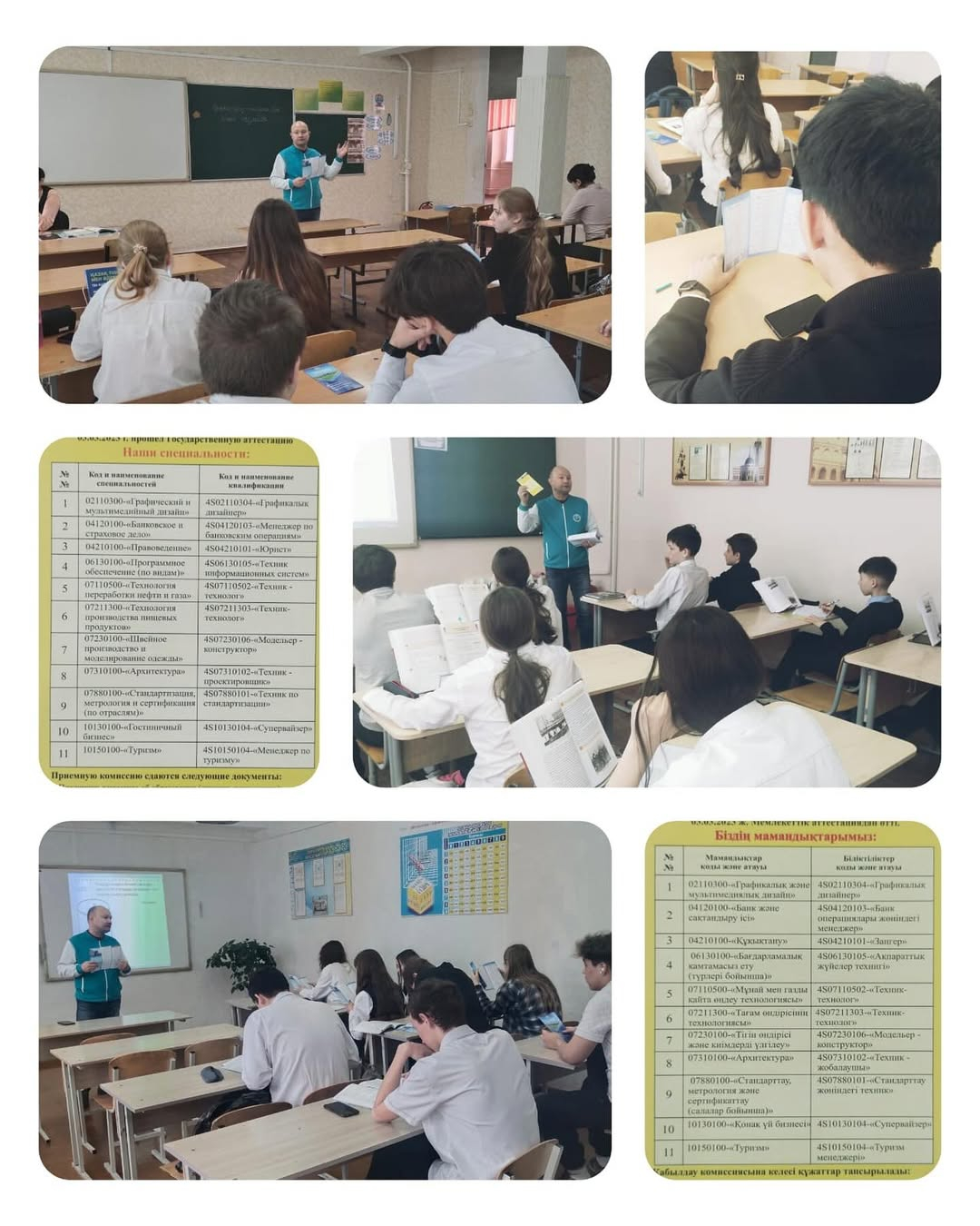 Түлектердің болашақ кәсіби құзыреттілігі бағытында кәсіптік бағдар беру бойынша көмек көрсету мақсатында Қ.Құлжанов атындағы Қазақ технология және бизнес университетінің өкілдерімен кездесу өтті.…