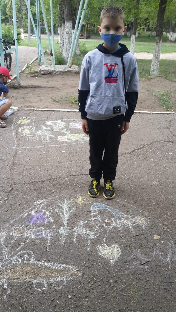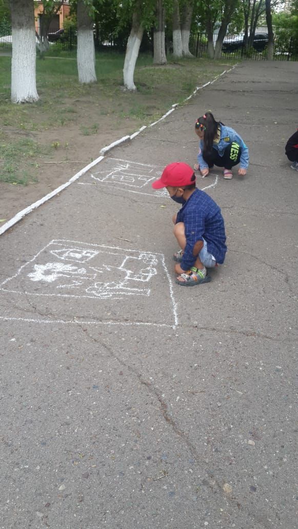 Бүгін, 1 маусым - балалар қорғау күні мерекесі шеңберінде оқушылар "Менің бақытты балалық шағым" тақырыбында асфальтқа суреттер салды.