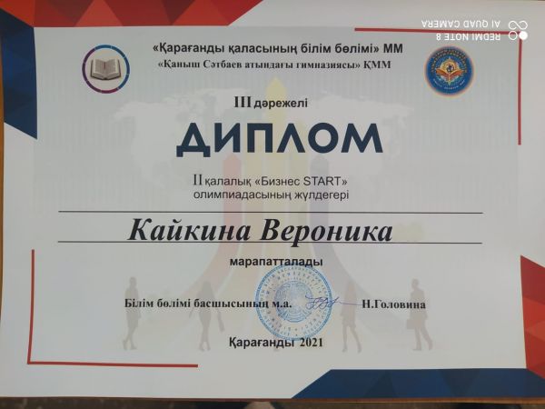 Кәсіпкерлік және бизнес негіздері пәнінен облыстық олимпиаданың қалалық кезеңінен 3 орын иеленген Бактыбаева А. мен Кайкина В. құттықтаймыз!!! Мұғалімі Гагина М.Н.