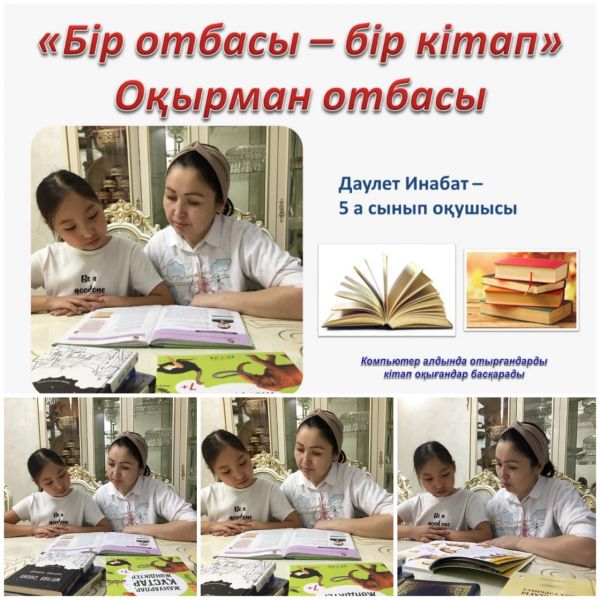 N59 жалпы білім беретін мектептің 5 а сынып оқушысы Даулет Инабат анасымен бірге кітап оқуды өздерінің сүйікті істеріне айналдырған. "Бір отбасы - бір кітап" оқырман отбасы акциясы а…