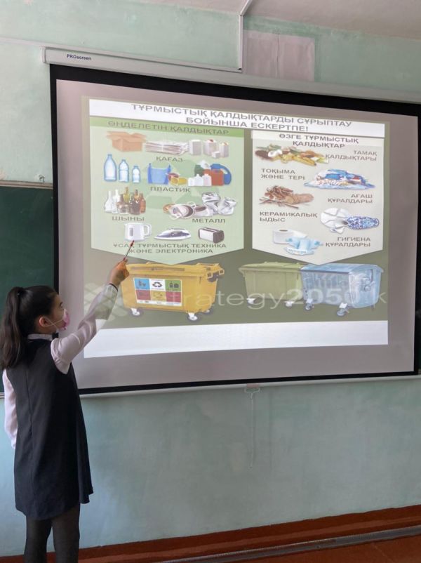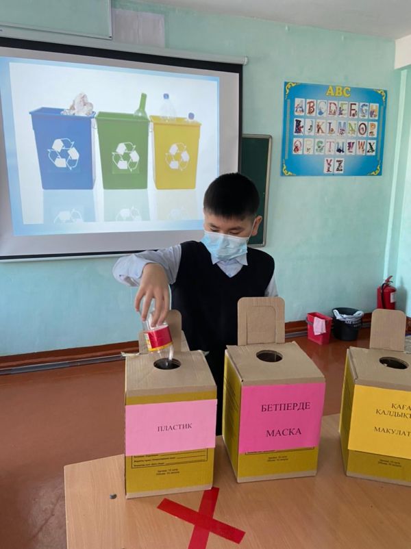 "Экология және мен" жобасы аясында 4 "А" сыныбында "Қалдықты бөлек жинау " кіріктілген сабақ өткізілді. Жауапты мұғалім Тамабаева А.Қ.