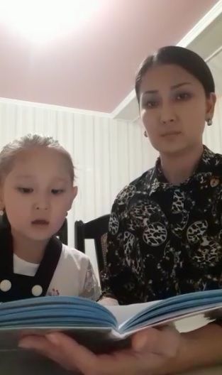 "Бір отбасы - бір кітап". 7В сынып оқушысы Сыздыкова Аиша анасы Марал Канатовнамен А. Құнанбаевтың "Ескендір" поэмасынан үзінді оқыды.