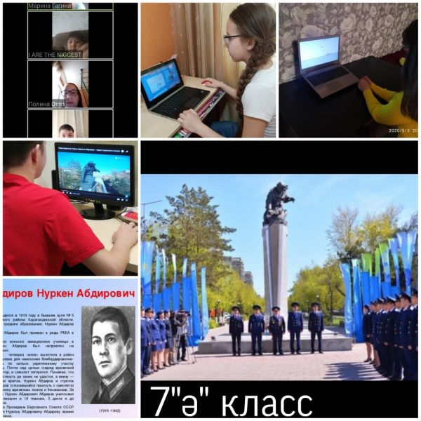 7Ә сыныбында Ұлы Жеңіске 75 жылдығы мерекесі шеңберінде Совет Одағының батыры Н. Әбдіровке 100 жыл толуына байланысты онлайн сабақ өткізілді. Сынып жетекшісі Гагина М.Н.
