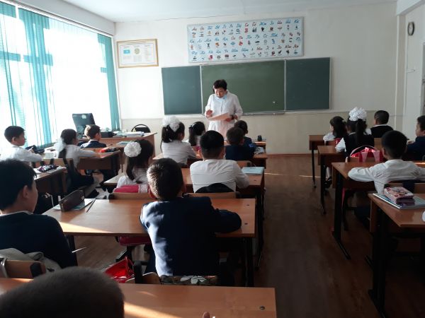 Мектептің медициналық қызметкері оқушылармен вирустық инфекция туралы әңгіме өткізді.