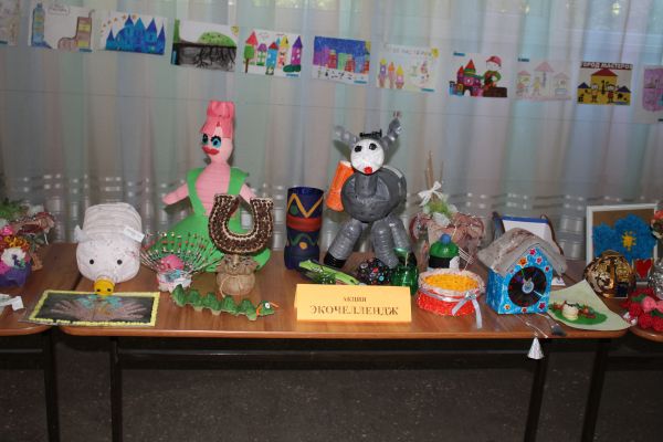 26 мамырда республикалық «Экочеллендж» акциясы шеңберінде 1-6 сынып оқушылары арасында қалдықтардан жасалған макеттер мен жасанды заттар, 1-4 сыныптар арасында суреттер көрмесі, «Т…