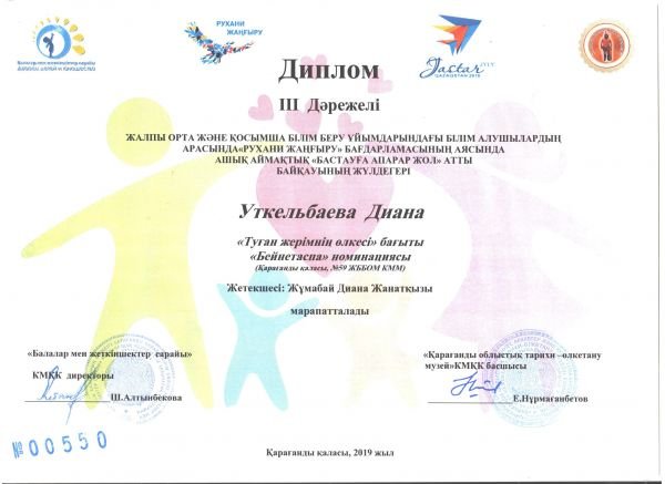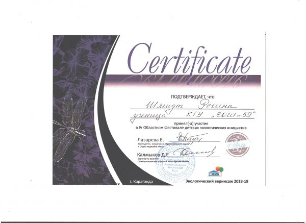 №59 ЖББОМ оқушылары ІV Облыстық балалардың экологиялық бастамалары «Экологиялық вернисаж» фестиваліне қатысты. Қатысушыларды құттықтаймыз Немкович А 8Ә сынып, Сидоренко Д 5Б…