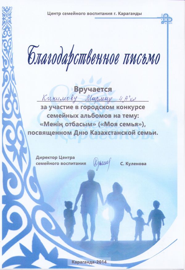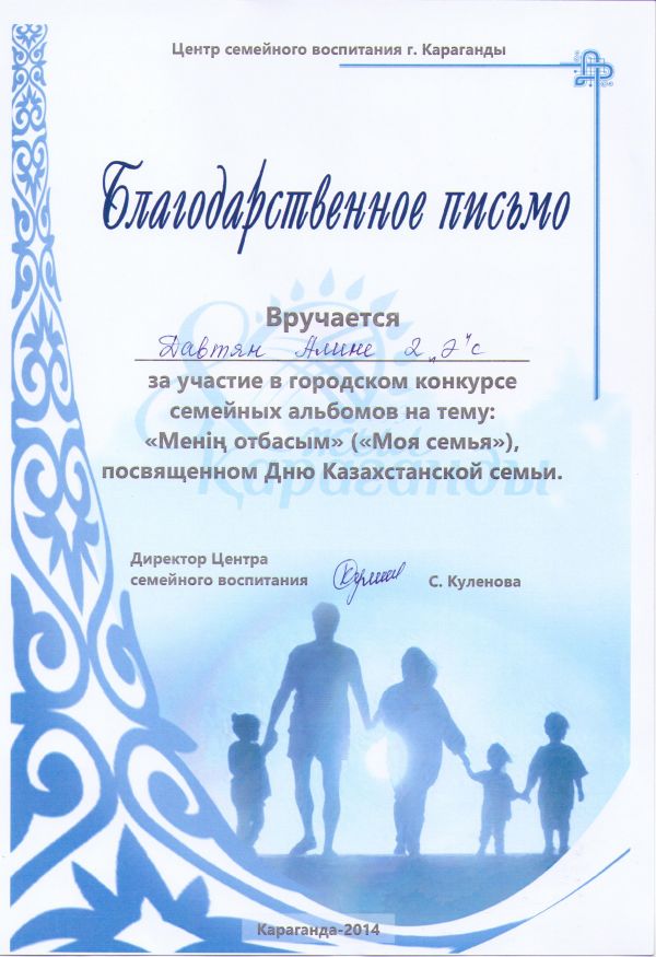 №59 ЖББОМ оқушылары Қазақстандық жанұя күніне арналған "Менің отбасым" атты отбасы альбомы байқауына қатысып "Алғыс хаттарымен"&…