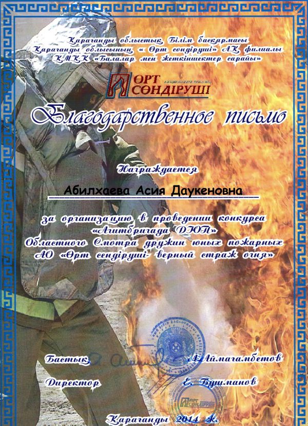 Поздравляем отряд ЮИД "Ақ жол" и руководителя отряда ЮИД Абилхаеву А.Д. за занятое 3- место в городском конкурсе "ЮИД- 2014"