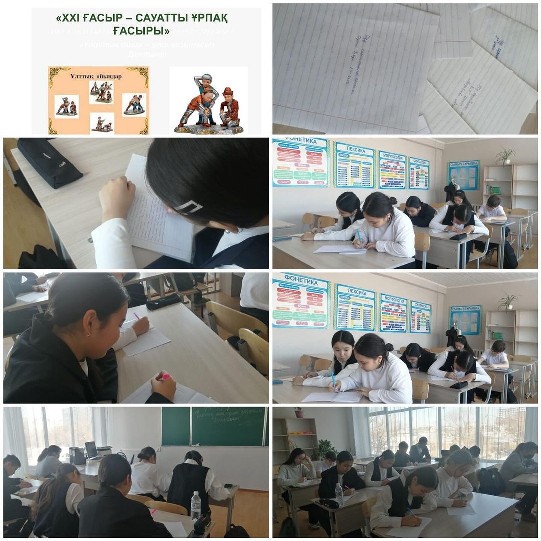 “ХХІ ғасыр - сауатты ұрпақ ғасыры”. Оқу сауаттылығы апталығы аясында 8 “А” сынып оқушылары “Ұлттық ойын - ұлт қазынасы” тақырыбында диктант жазды.