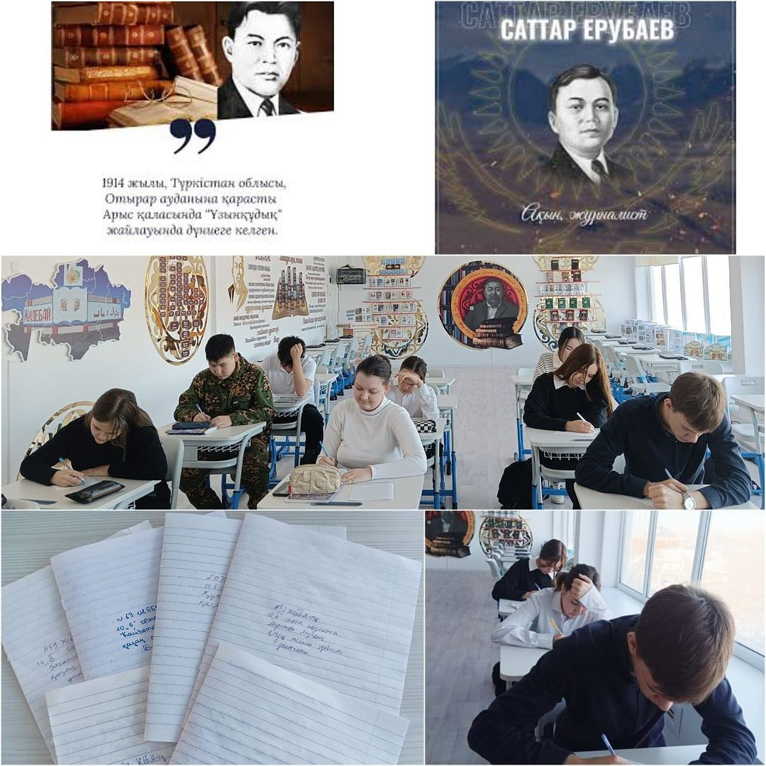 Оқу сауаттылығы апталығы аясында 16 қаңтар күні 10«Б» сынып оқушылары жазушы Саттар Ерубаевтың туғанына 110ж. толуына орай жазушының өмірі мен шығармалары туралы диктант жазды.