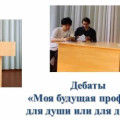 Дебат «Менің болашақ мамандығым жан үшін бе, әлде ақша үшін бе?» Қатысушылар: 11 сынып Жаттықтырушы: Гагина М.Н.