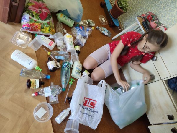 "ЭкоАсар" акциясы шеңберінде 5 В сынып оқушысы Берікбол Ділназ шикізаттар - қағаз қалдықтары мен пластик бутылкаларды бөліп жинап, қайта өңдеуге дайындады. Сынып жетекшісі Конкашева Г.О.
