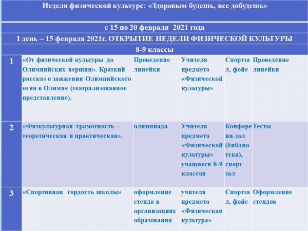 Дене шынықтыру апталығы «Денің сау болса, бәрін аласың»