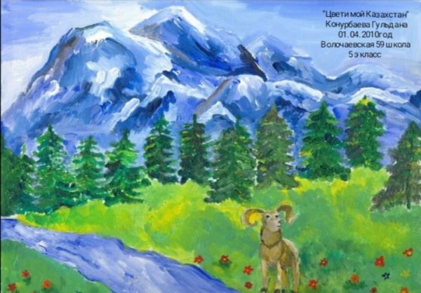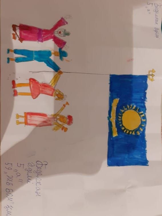 N59 ЖББОМ-тің 5А сынып оқушылары Жаңабайқызы А, Бедилхан А, Әлжан Ә "Қазақстан - достық мекені" тақырыбындағы онлайн сурет байқауына қатысты.