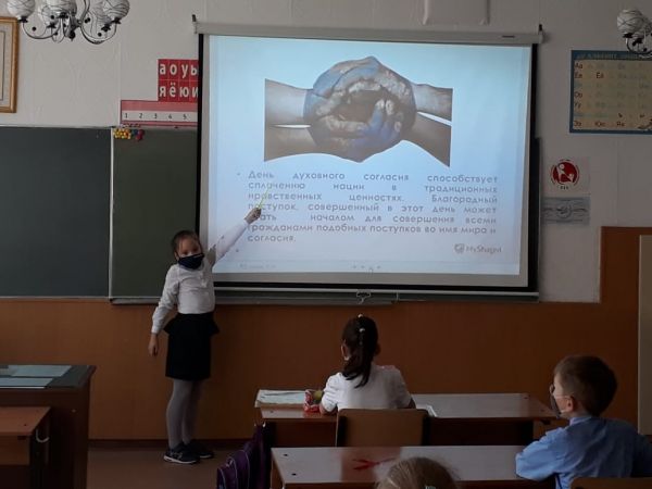 2 " Ә " сыныбында Рухани келісім күні шеңберінде "Рухани келісім - бірлік пен тұрақтылық кепілі" тақырыбында сынып сағаты өткізілді. Сынып жетекшісі Щур О. С.
