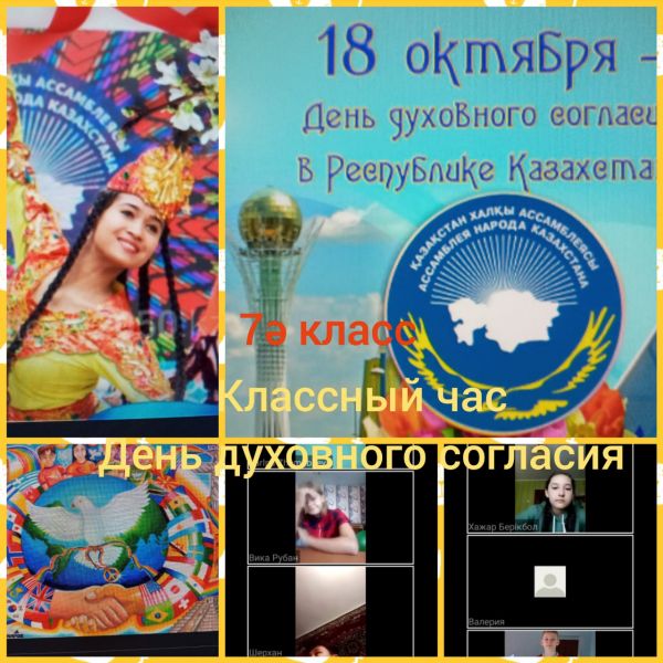 15 қазанда 7"ә" сыныбында Рухани келісім күні шеңберінде "Рухани келісім - бірлік пен тұрақтылық кепілі" тақырыбында онлайн форматта сынып сағаты өткізілді. Сынып жетекшісі…