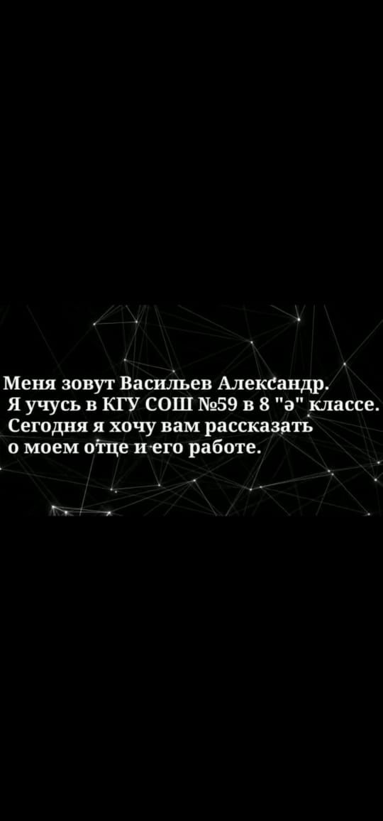 "Менің әкем - дәрігер" №59 ЖББОМ КММ 8"Ә" сынып оқушысы ВАСИЛЬЕВ АЛЕКСАНДР.