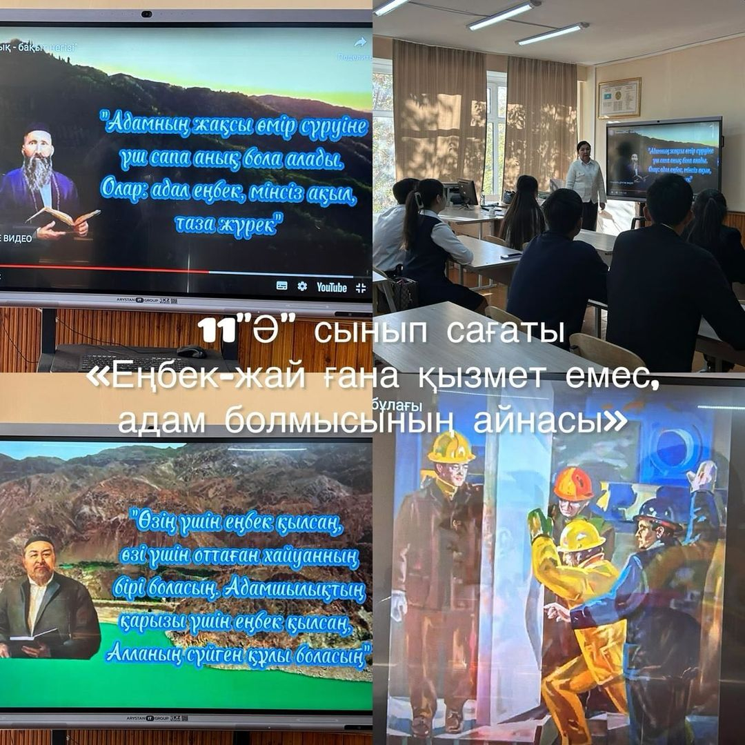 11 “Ә” сыныбында “Еңбек-жай ғана қызмет емес, адам болмысының айнасы”тақырыбында сынып сағаты өтті.