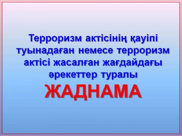 Мектеп оқушылары мен ата-аналар «Терроризм актісінің қауіпі туындаған немесе терроризм акті…