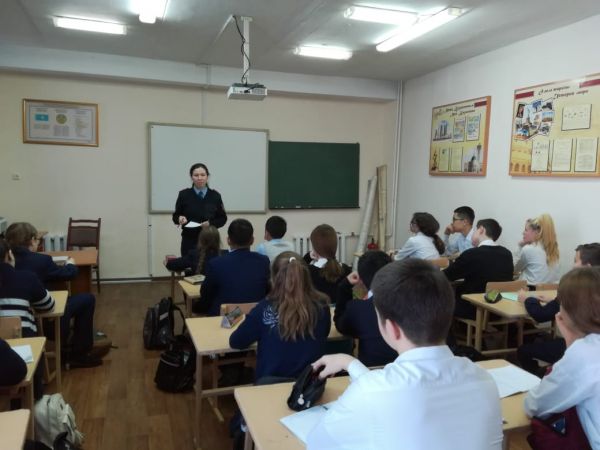 59 ЖББОМ-де 1-11 сыныптар арасында Оңт-Шығыс полиция бөлімі инспекторлары құқық бұзушылықтың алдын алу жөнінде әңгіме өткізді.