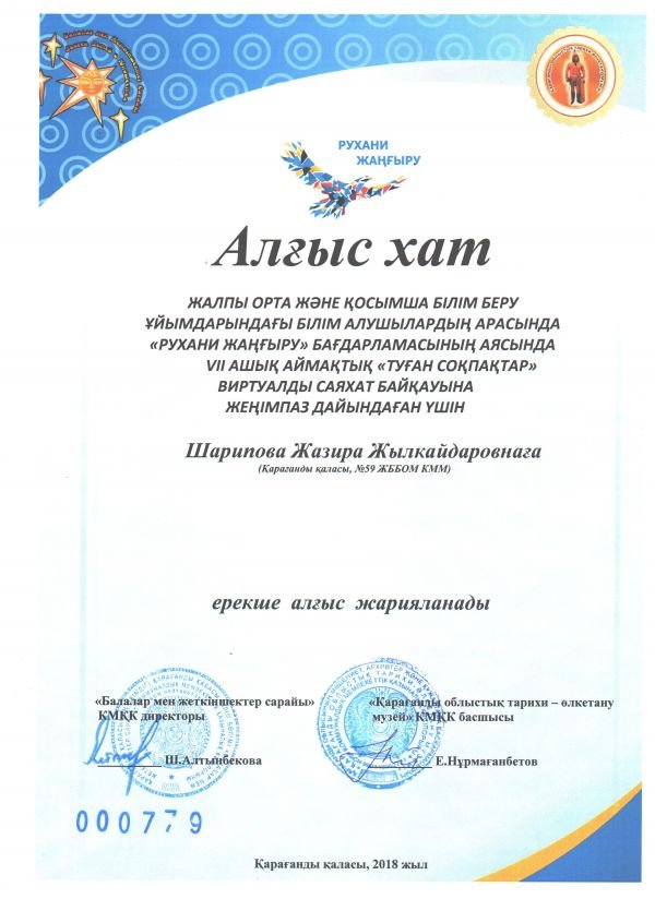 2орын алған №59 ЖББО мектептің 7 В сынып оқушысы Абенбаев Аян құттықтаймыз.