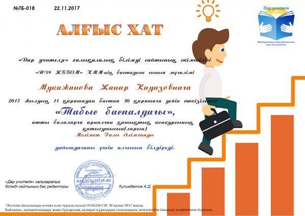 2017 жылы 23 қарашада 6Ә сыныбында сыныптан тыс ісшара математикалық КВН өткізілді. Мақсаты: оқушылардың ой өрісін, алғырлықтарын, ұжыммен жұмыс жасау мәдениетін дамыту, математикаға қызығушылықтары…