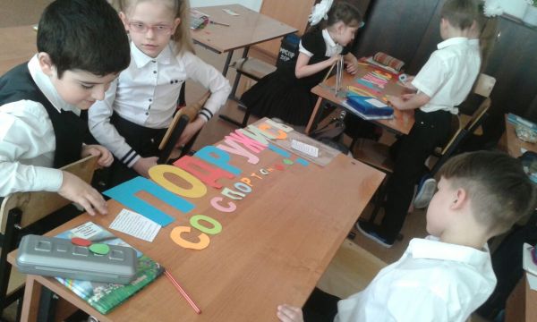 Тәрбие сағатында оқушылар топ бо…